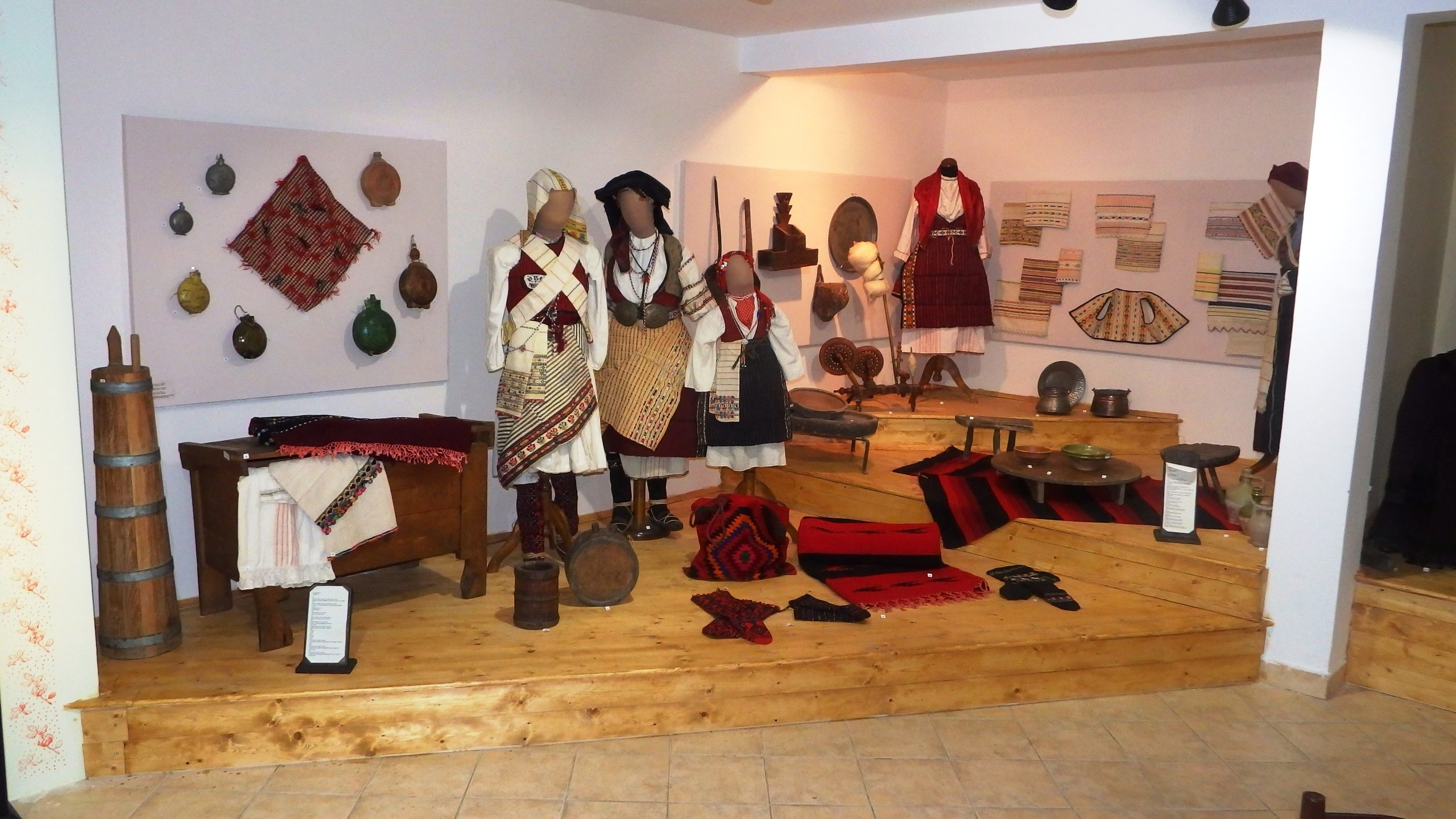 Most of the objects are textiles and include individual items of clothing, woven pieces, and folk costumes from the Ovche Pole region, Kumanovo–Kriva Palanka, Pijanec, Lazavichki (Radovishko–Shtip region), Plachkovica (Berovo–Delchevo), and folk costumes from the villages of Vlastica, Karagjuni, and Sarachani. Items made of metal, ceramics, and wood used in households are presented as representative ethnological material from the Shtip craft tradition. The museum’s collection also includes ethnological material related to engagement and wedding gifts, as well as how these customs are practiced today.
