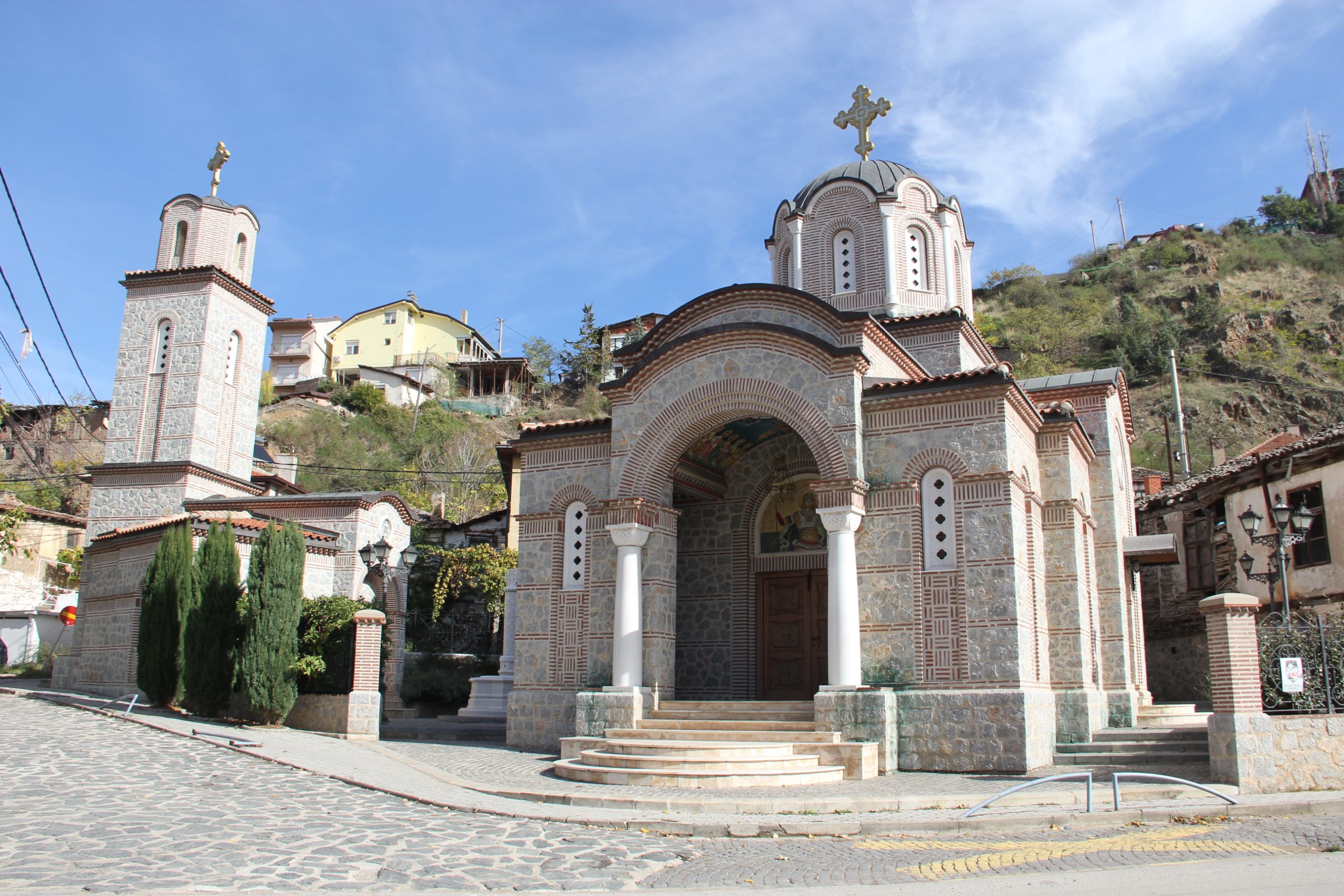 The church “St. Dimitrija Solunski” is located at the entrance to the city of Shtip from the direction of Radovish, on the right-hand side at the very entrance to Novo Selo.