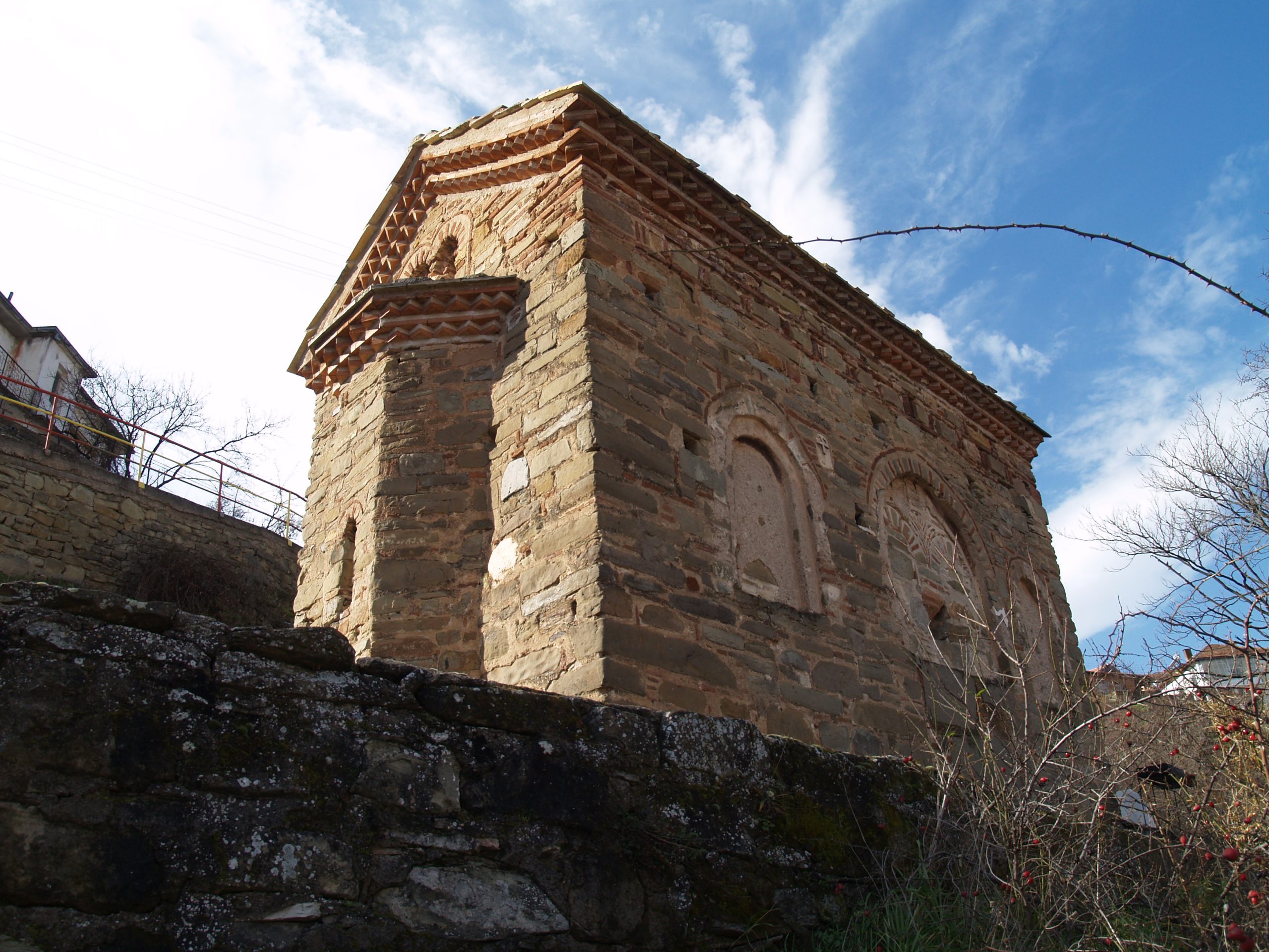 On the eastern facade, above the low door through which the church is entered, there is a shallow niche with a semicircular top, built with a saw-tooth course of bricks, where a saint was painted to whom the church was dedicated; however, over time the fresco has been destroyed.