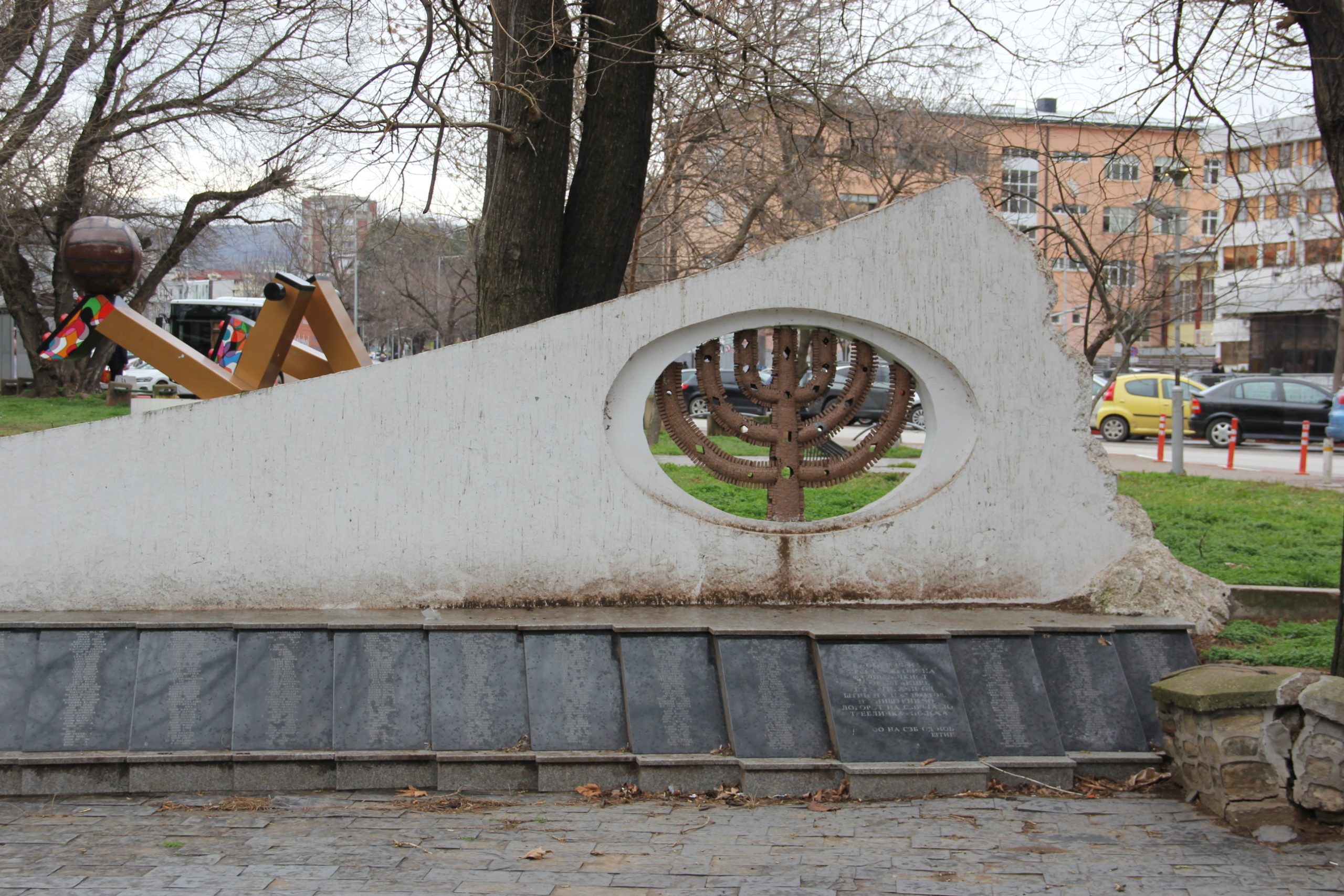In honor of the deported Jews from Shtip, a monument was erected in 1985 in the city center, on the site of the former Jewish quarter, created by artist Metodi Andonov. The monument symbolizes the lives of the Jews that were tragically cut short in March 1943. The names of all Shtip Jews who were deported and killed in Treblinka are inscribed on the monument.