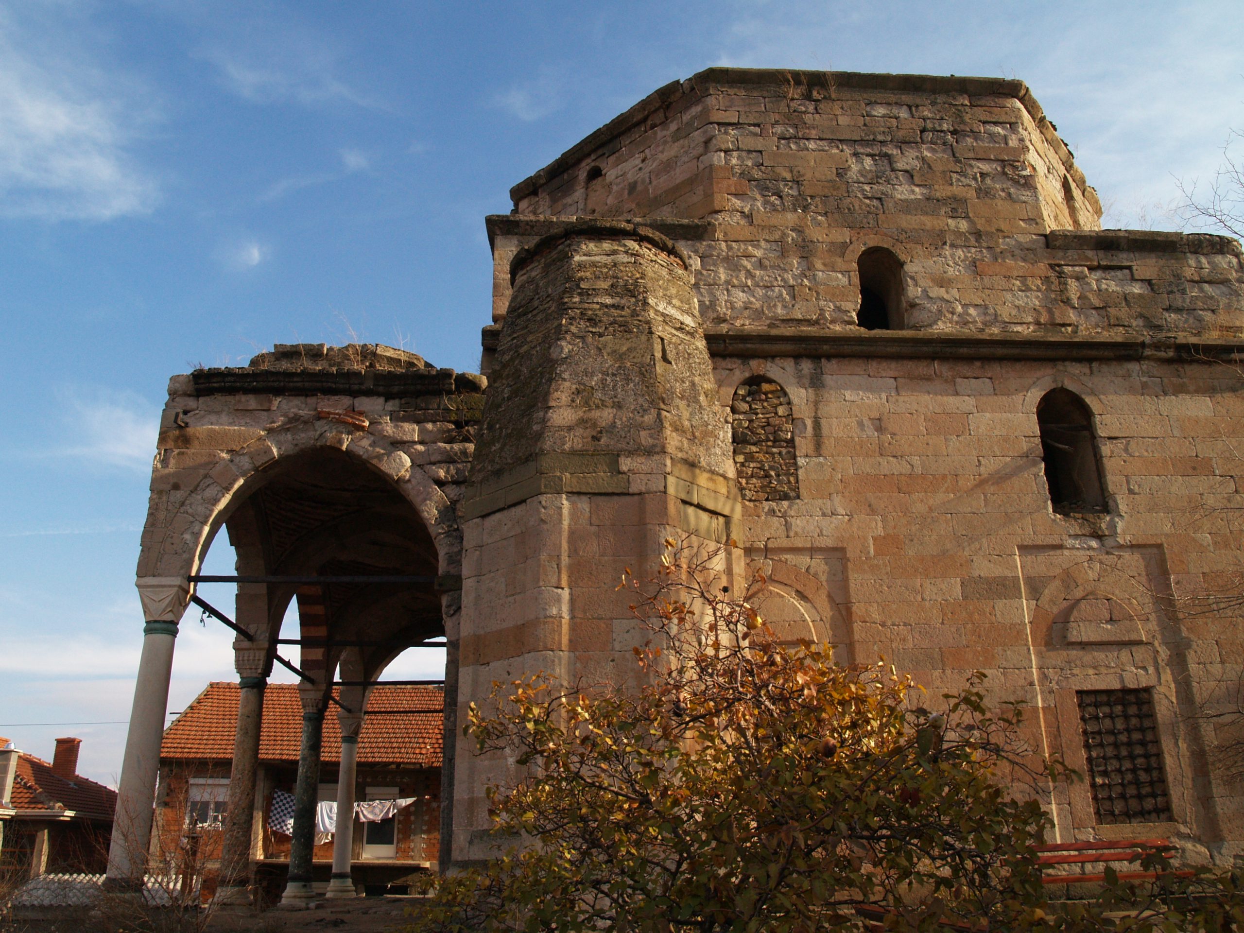 The Husa Medin Pasha Mosque belongs to the early urban style of Ottoman architecture. The octagonal, shallow-vaulted mihrab on the southern side distinguishes this building from the other preserved monuments of this type in Macedonia. This mihrab form, known as early as the 14th century, was adopted under the influence of Seljuk and early Ottoman architecture.