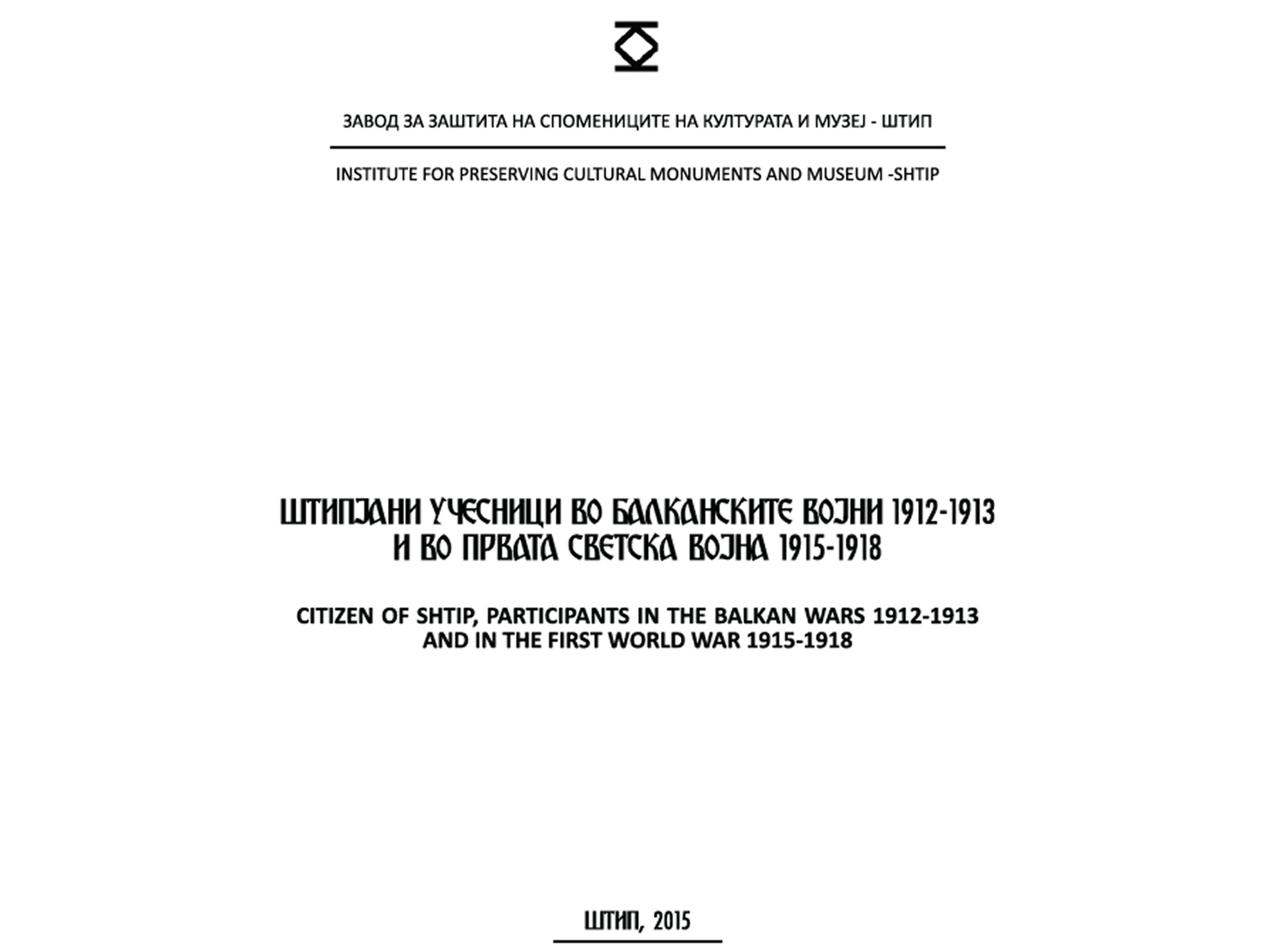 Book – Shtip Citizens in the Balkan Wars and the First World War
